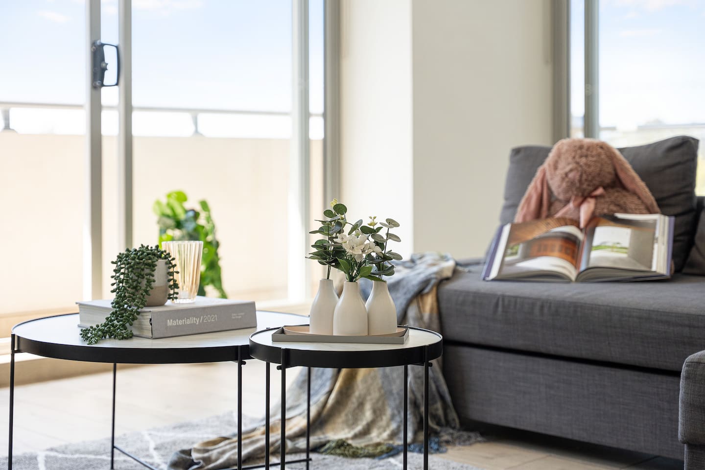 Let’s begin your stay in the light-filled living area, thoughtfully designed to provide a relaxing and stylish space after a day out. The fully equipped kitchen and dining area make it easy to prepare and enjoy meals with ease and comfort. ★ LIVING ROOM ★ Enjoy cozy moments in the spacious living room — perfect for watching your favourite show, getting work done, or accommodating an extra guest. ✔ Comfortable Sofa ✔ Sofa Bed ✔ TV ✔ Air Conditioning ★ KITCHEN & DINING ★ Prepare your favourite meals in the fully equipped kitchen. Perfect for short or long stays, it comes with all the essentials. ✔ Stove & Oven ✔ Microwave ✔ Dishwasher ✔ Refrigerator & Freezer ✔ Toaster & Kettle ✔ Plates, Glasses & Cutlery ✔ Pots, Pans & Cooking Utensils ✔ Dining Table with Seating for 6 ★ BEDROOMS – 2 BEDROOMS + SOFA BED ★ Rest easy in one of the two spacious, sunlit bedrooms featuring quality linen and built-in storage. The bedrooms have blinds, but they aren’t blackout blinds, so a bit of natural light can still come through in the morning. Bedroom 1: Queen Bed Bedroom 2: Queen Bed Living Room: Sofa Bed ★ BATHROOMS – 2 FULL BATHROOMS ★ Enjoy a fresh start or relaxing end to your day in either of the modern, spotless bathrooms. ✔ Walk-In Shower ✔ Vanity ✔ Mirror ✔ Toilet ✔ Towels ✔ Hair Dryer ✔ Essential Toiletries