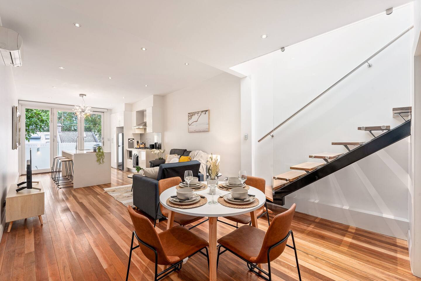 We’re committed to making your stay truly memorable, with every detail curated for an exceptional experience. We can't wait to welcome you and help create unforgettable memories! Please note: There’s one AC in downstairs living room and one AC in upstairs big bedroom. We provide fans in upstairs small bedroom and downstairs bedroom. Netflix is available for your entertainment! One of the bedrooms has a relatively low ceiling, but its queen size bed can accommodate two adults at ease. In the living room, there is a sofa bed, unfolding to dimensions of 171 cm (width) x 46 cm (height) x 190 cm (depth) Additionally, there is a beautifully designed staircase leading from the first floor to the second floor. While there is no dedicated parking space, worry not, as Secure Parking is available nearby on Harris Street. Alternatively, there is a paid off-street parking option right at the doorstep, allowing up to two hours of parking. Moreover, the convenience of a washer-dryer combo in the unit ensures efficient laundry solutions. — No on-site car park