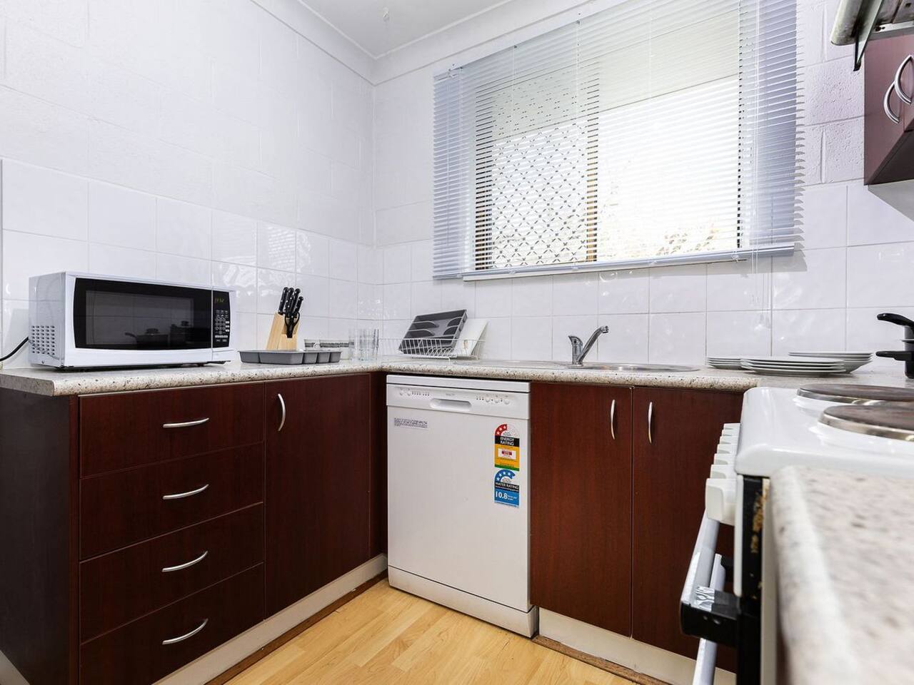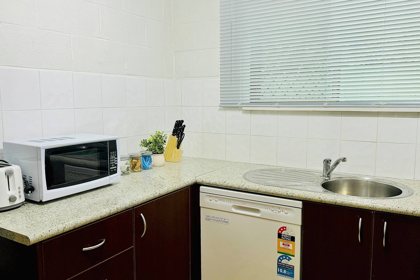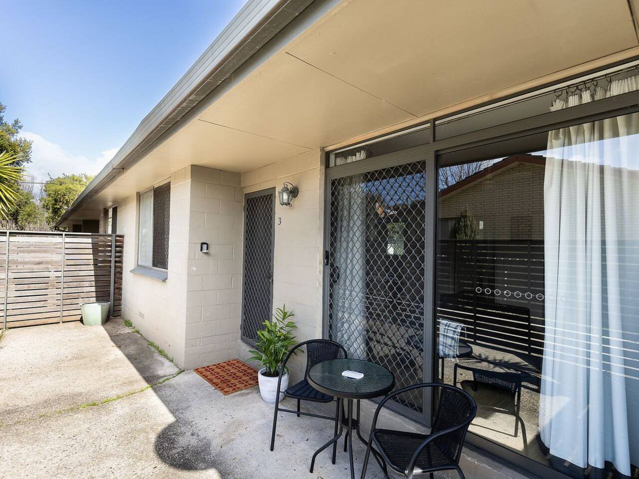 Stay in comfort and style at this modern 2-bedroom apartment, just a short walk to Albury’s bustling main precinct. Enjoy premium furnishings in the living area, a fully equipped kitchen, and the convenience of a washer/dryer. Relax in the spacious bedrooms or unwind in the outdoor sitting area, perfect in any season. Whether you’re visiting for work or leisure, this is the ideal base for your stay in Albury. Features include: ✔1 Queen Bed ✔2 Single Beds ✔ Fully Equipped Kitchen ✔Open-plan dining and lounge area ✔Premium furnishings and appliances ✔Complimentary essentials: Tea, coffee, and bathroom amenities provided ✔Coffee pod machine ✔Split-system heating and cooling ✔Combined washing machine and dryer ✔Fresh linen provided ✔Off-street parking ✔Secure entrance ✔Iron and ironing board We’ve got all the linen and towels covered for your stay. Check-in is available anytime after 3:00 PM, and check-out is by 10:00 AM otherwise arranged. Please be mindful of the check-out time so the cleaners can get the space ready for the next guests. ★ LIVING ROOM ★ Make yourself at home! Relax on the cozy sofa, catch up on your favorite shows, or take a moment to plan your next adventure. ★ KITCHEN & DINING ★ This fully equipped kitchen comes with reliable appliances, providing everything you need to prepare meals with ease—from simple breakfasts to hearty dinners. With ample countertop space, you'll have plenty of room to cook and enjoy your creations. ✔ Microwave ✔ Stove ✔ Dishwasher ✔ Oven ✔ Toaster ✔ Hot Water Kettle ✔ Refrigerator/Freezer ✔Dining Table with Seating for 4